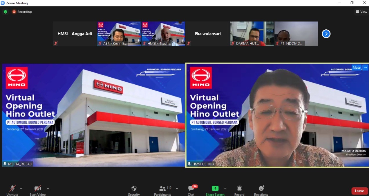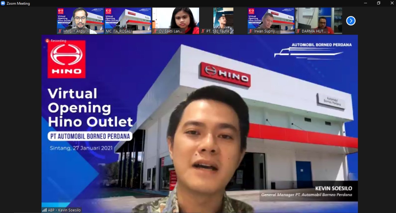 Sintang, Kalimantan Barat 27 Januari 2021. Dalam rangka meningkatkan pelayanan yang maksimal, PT Hino Motors Sales Indonesia (HMSI) kembali meningkatkan jaringan outletnya di Sintang, Kalimantan Barat. Outlet yang berada dibawah naungan PT Automobil Borneo Perdana (ABP), kini resmi beroperasi dengan fasilitas sales, service, spare part (3S). Showroom Hino Sintang yang berlokasi di Jalan MT Haryono KM 16, Kab. Sintang diresmikan secara virtual atau online dengan mengundang customer setia Hino di Kalimantan Barat melalui aplikasi Zoom. Pembukaan showroom secara virtual merupakan salah satu penerapan protokol kesehatan yang di jalankan oleh Hino Indonesia dalam mencegah penyebaran Covid-19.
