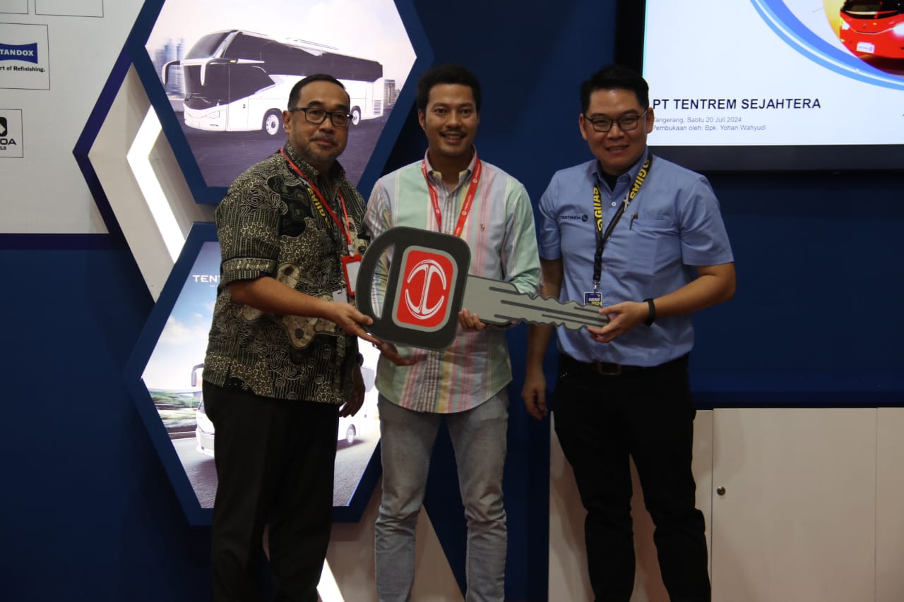 Penyerahan bus selanjutnya dilakukan di booth Perusahaan Karoseri Tentrem pada Sabtu, 20 Juli 2024. Hino